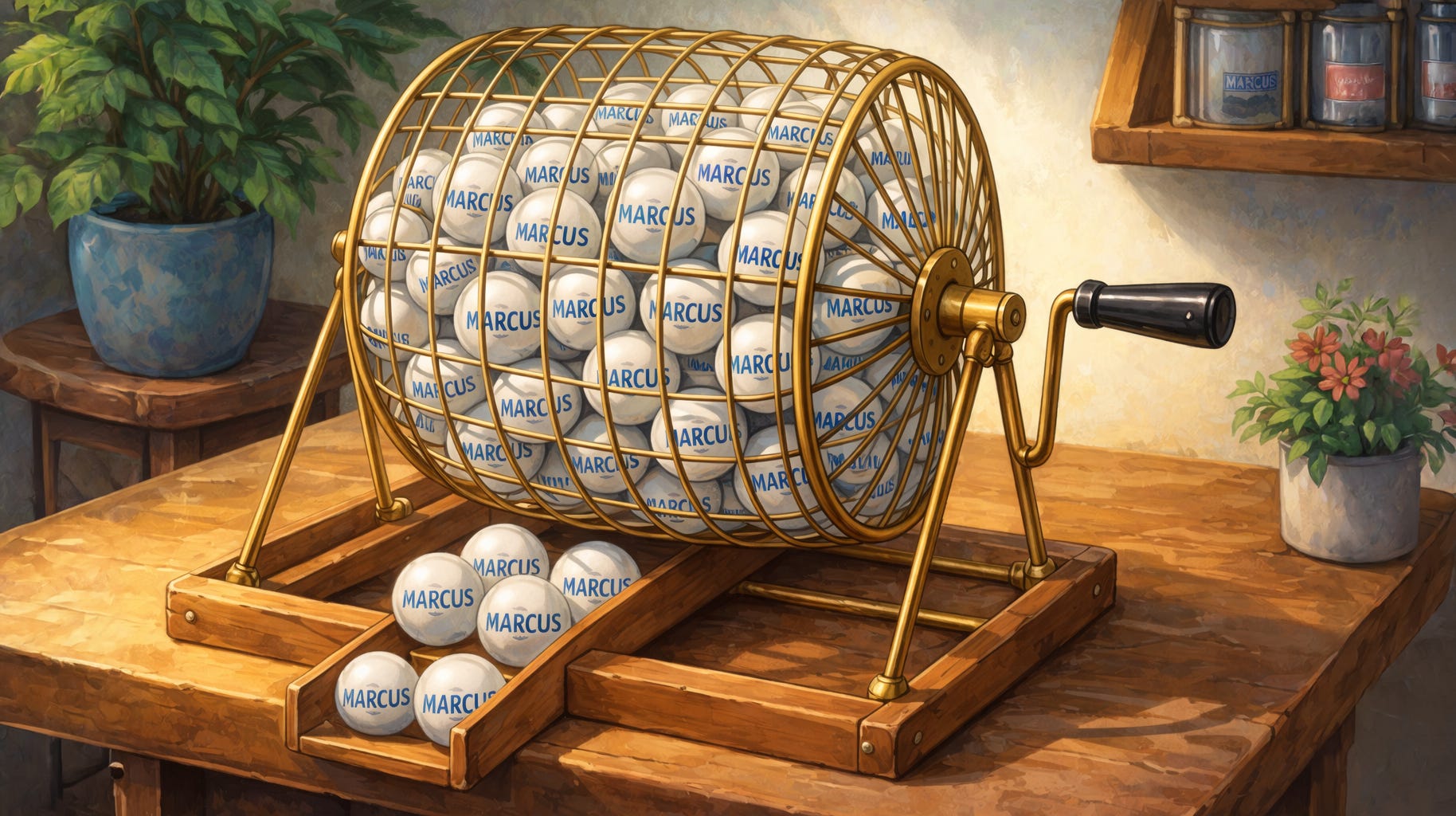 Think about what random selection actually requires. If I asked you for a random name ten thousand times, your results wouldn’t be very random either. You’d gravitate toward the same handful of names — the ones that come to mind easily, the ones that feel “default,” the ones that don’t require effort. To produce genuinely random selections, you would need two things: a list of options and a set of dice to select among them. Randomness isn’t a cognitive act. It’s a procedural one.